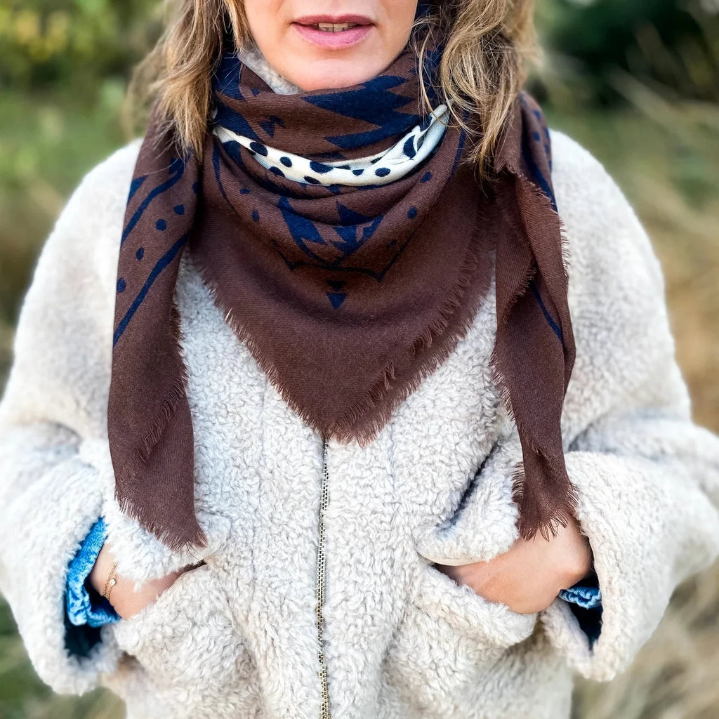 Le foulard The Twin Cheetahs d’Antan Créations est une pièce graphique et audacieuse, mêlant motifs animaliers dans une palette subtile de beige, marron et noir. Il apporte une touche moderne et élégante à vos tenues tout en restant raffiné. Confectionné à 100 % en laine, ce foulard est à la fois chaud et léger, parfait pour vous accompagner tout l’hiver.