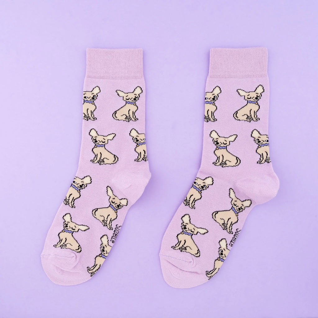 Les chaussettes Chihuahua sont parfaites pour les amoureux des chiens ! Douces et moelleuses, elles sont ornées de petits chihuahuas rigolos sur un fond neutre, pour une touche originale et pleine de caractère.