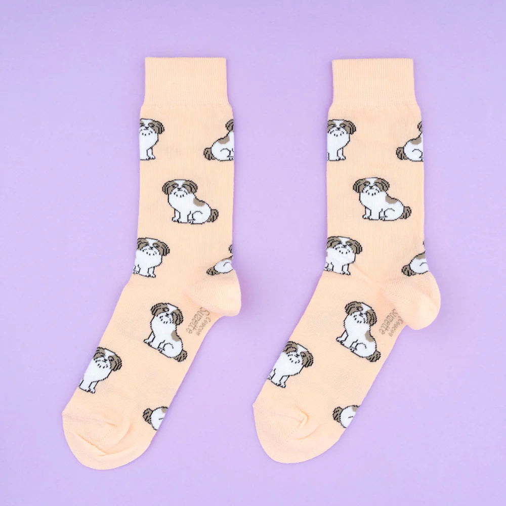 Les chaussettes Shih Tzu sont parfaites pour les amoureux des chiens ! Douces et moelleuses, elles sont ornées de petits shih tzu rigolos sur un fond coloré, pour une touche originale et pleine de caractère.