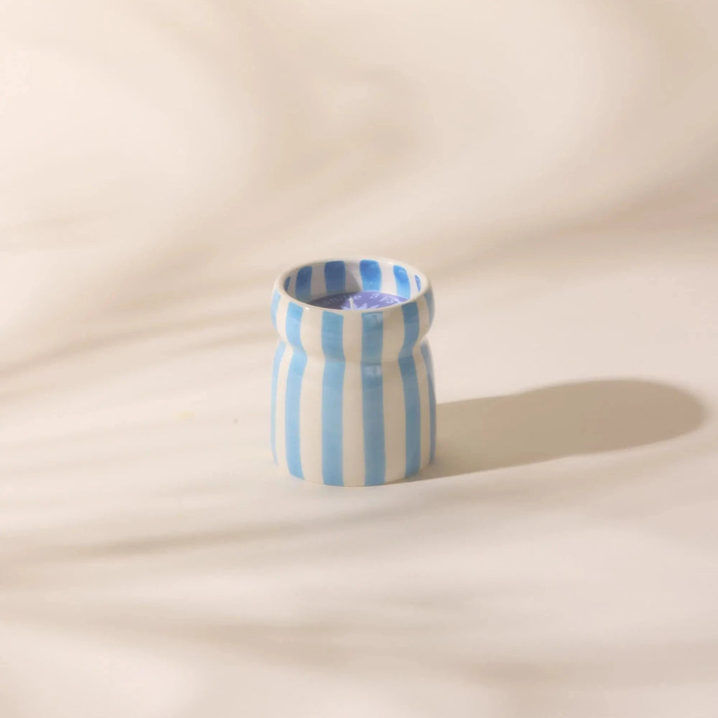 La bougie Cabana – Lost at Sea de Paddywax apporte une atmosphère fraîche et marine à votre intérieur. Son parfum iodé et floral, mêlant sel marin, agrumes et notes de jasmin, évoque la brise de l’océan et les promenades en bord de mer. Présentée dans un joli pot en céramique peint à la main aux tons bleu et blanc, elle devient également un objet décoratif à réutiliser une fois la bougie consumée.
