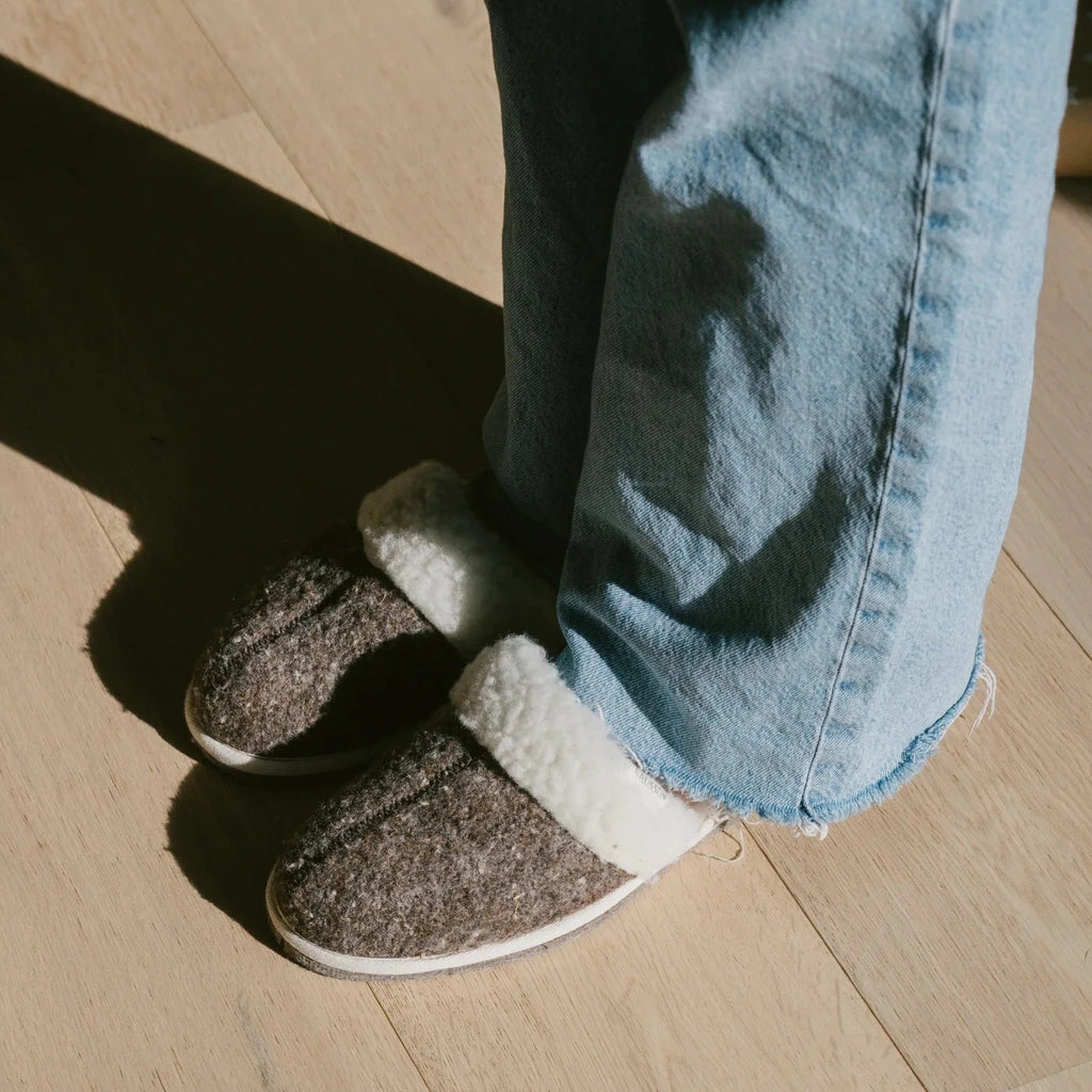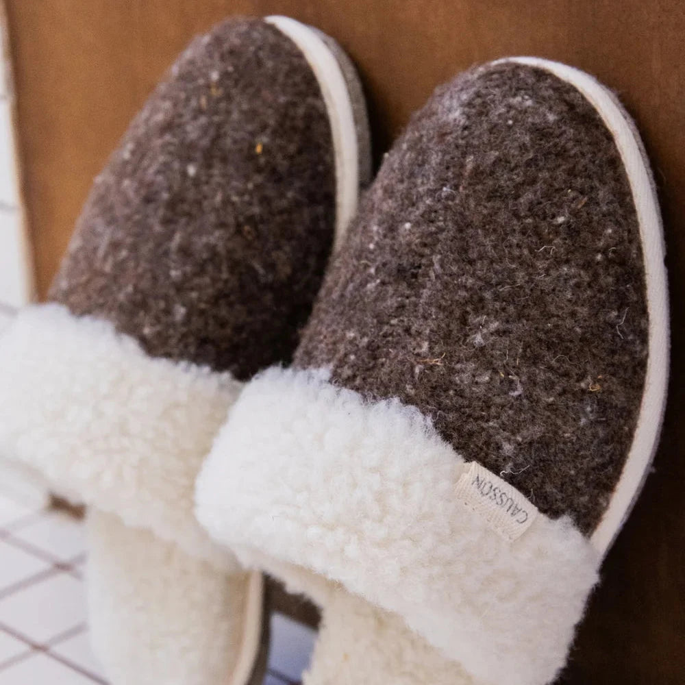 C'est LA nouvelle paire de la saison ! Les chaussons Ginette de Caussün sont conçus pour vous offrir un confort ultime et une sensation de chaleur unique. De couleur chocolat et fabriqués artisanalement, ils allient douceur et durabilité. La laine de haute qualité capture l'humidité et limite les odeurs, pour garder vos pieds au sec et bien au chaud. Ces chaussons écoresponsables deviendront vite vos compagnons indispensables pour des moments de détente à la maison.