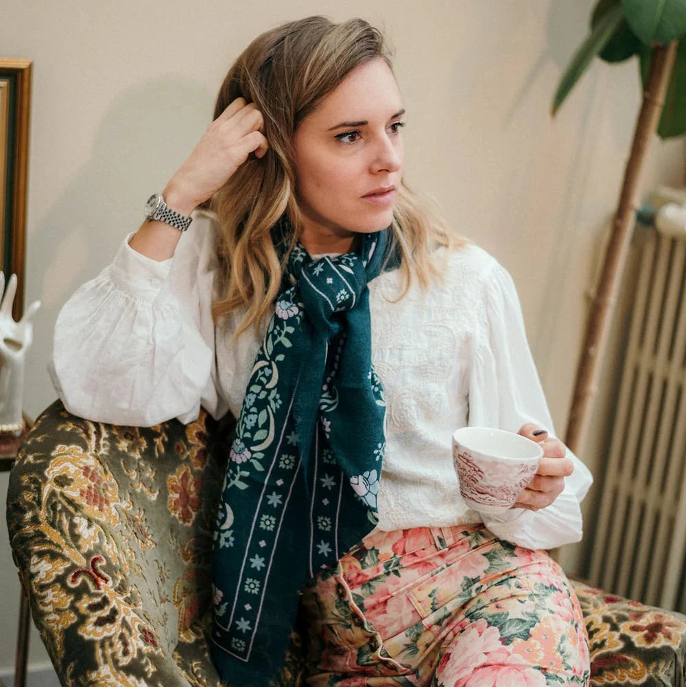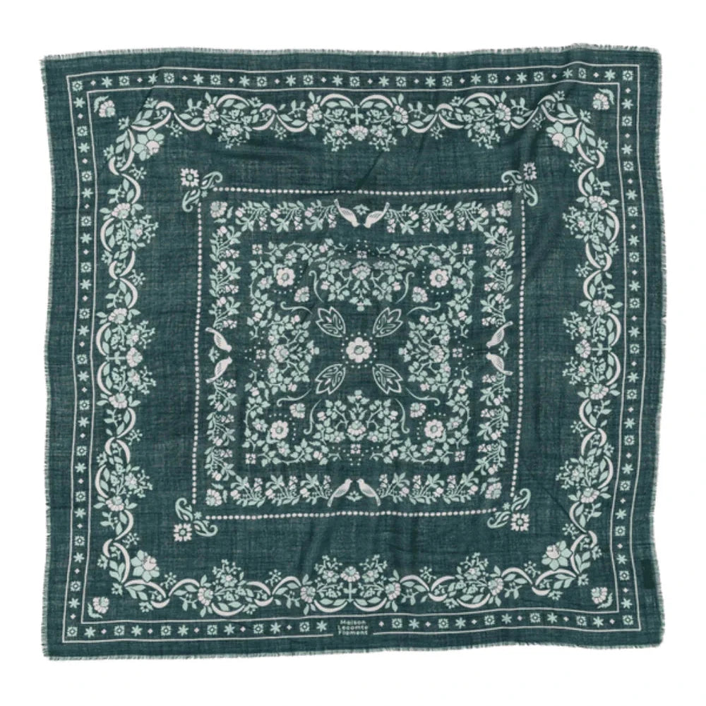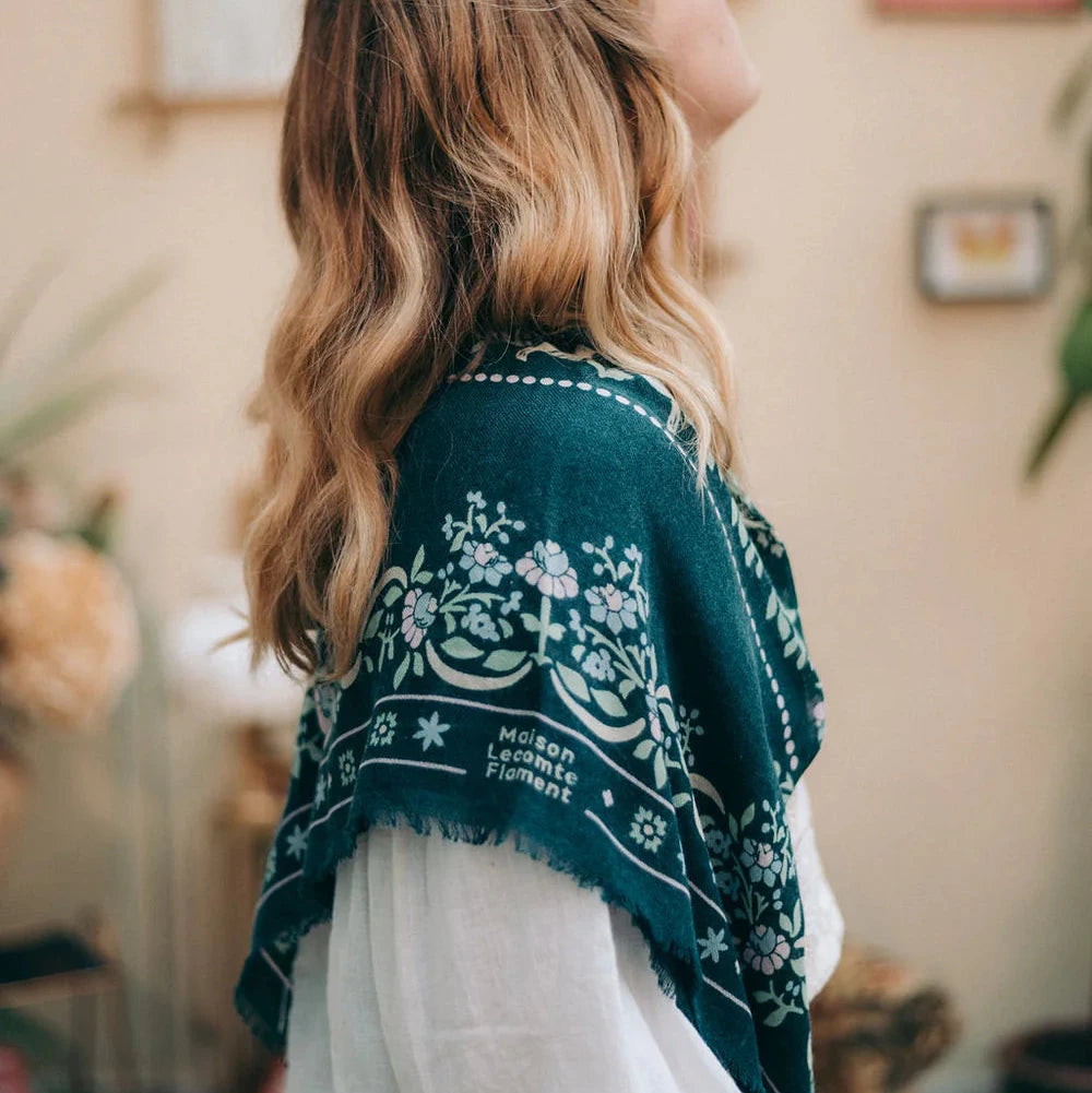 Le foulard Secret Garden Vert Forêt marie la chaleur de la laine à la légèreté de la soie dans un imprimé fleuri délicat. Son motif végétal, plein de fraîcheur et d’élégance, et apporte une touche lumineuse à vos tenues automnales. Sa texture douce et soyeuse enveloppe le cou d’un confort raffiné, pour une allure à la fois naturelle et sophistiquée.