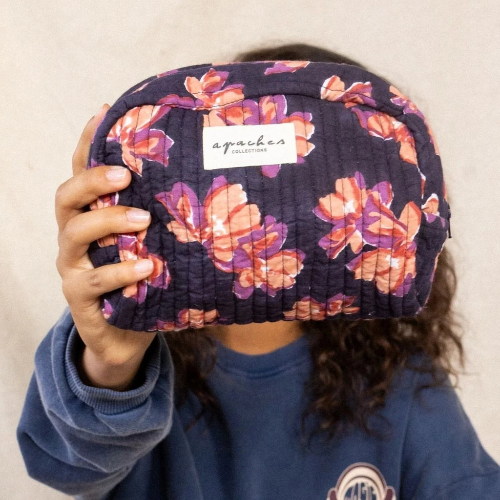 Découvrez la trousse Gaya en imprimé Violeta Navy, aux délicates fleurs relevées par un fond bleu profond. Compacte et fonctionnelle, elle est parfaite pour y glisser maquillage, petits soins, accessoires ou trésors personnels. Facile à transporter, elle se glisse dans tous les sacs et apporte une touche élégante et intemporelle à vos journées.