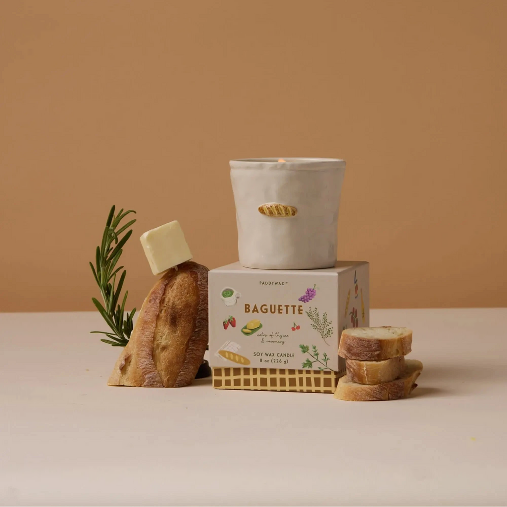Plongez dans l’atmosphère authentique d’une boulangerie parisienne avec la bougie Bistro – Baguette de Paddywax. Son parfum réconfortant mêle subtilement notes herbacées de thym et de romarin, relevées d’un fond boisé et musqué qui évoque la chaleur d’un pain tout juste sorti du four. Présentée dans un élégant pot en céramique avec bec verseur, orné d’une petite baguette en relief, cette bougie originale apporte une touche à la fois gourmande et décorative à votre intérieur.
