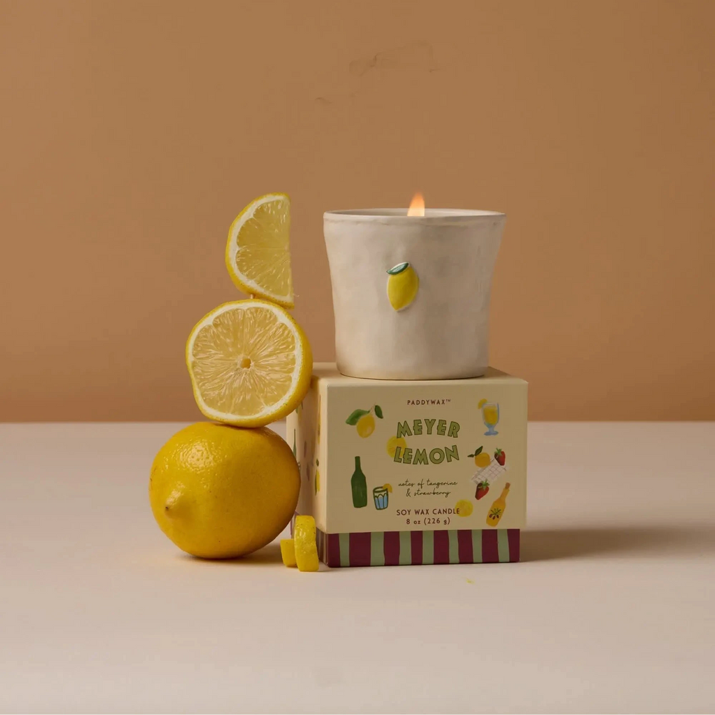 Faites entrer la fraîcheur du soleil dans votre intérieur avec la bougie Bistro – Lemon de Paddywax. Véritable concentré de bonne humeur, son parfum acidulé mêle citron Meyer, mandarine et fraise, créant une ambiance vivifiante et lumineuse. Présentée dans un pot en céramique avec bec verseur, orné d’un petit citron en relief, cette bougie allie élégance et gaieté — un incontournable pour égayer votre quotidien.
