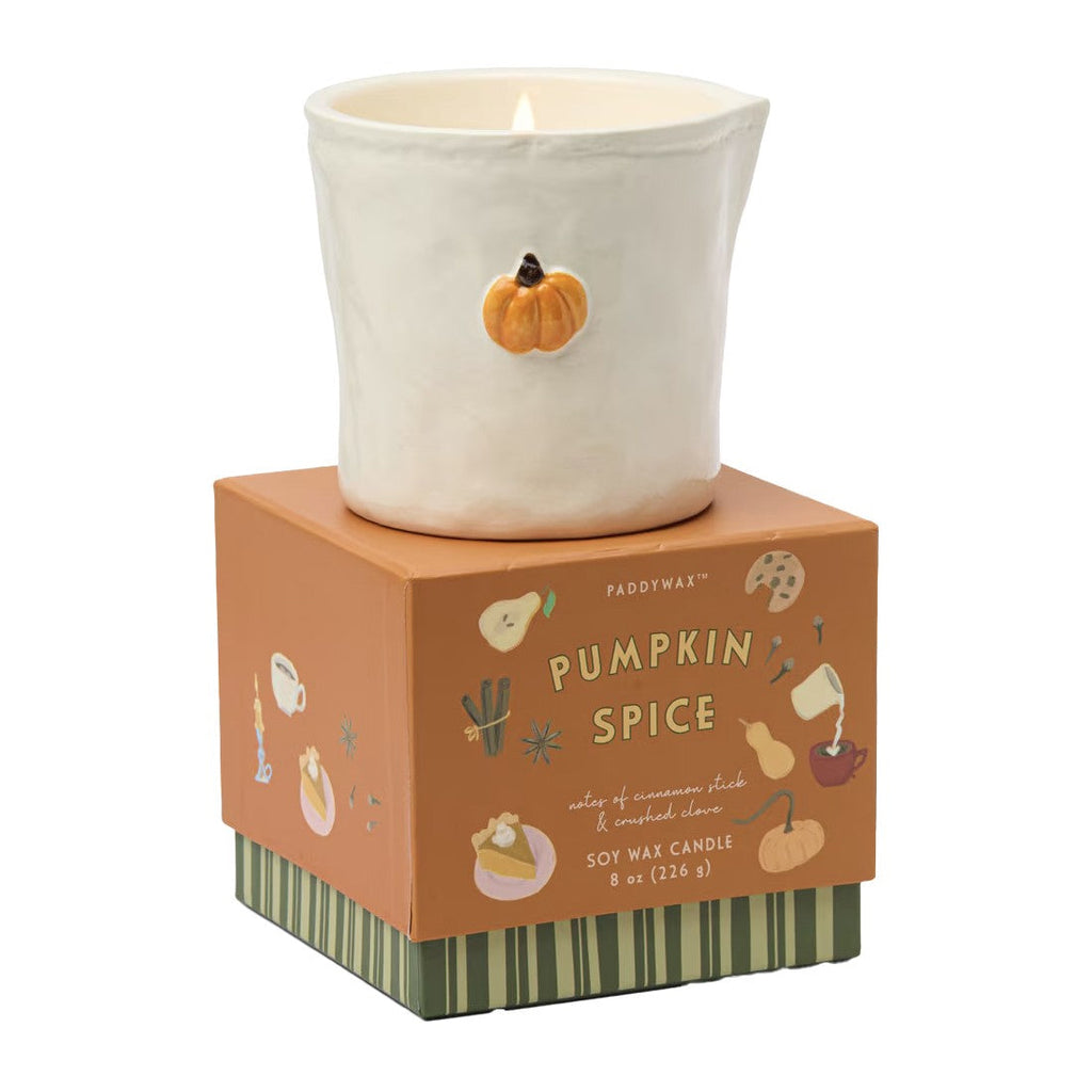 Apportez la chaleur et la magie de l’automne à votre intérieur avec la bougie Bistro – Pumpkin de Paddywax. Son parfum gourmand et réconfortant, mêlant cannelle, tarte à la citrouille et clou de girofle, enveloppe votre maison d’une atmosphère conviviale et chaleureuse. Présentée dans un élégant pot en céramique avec bec verseur, décoré d’une petite citrouille en relief, cette bougie devient également un objet décoratif raffiné à conserver une fois consumée.