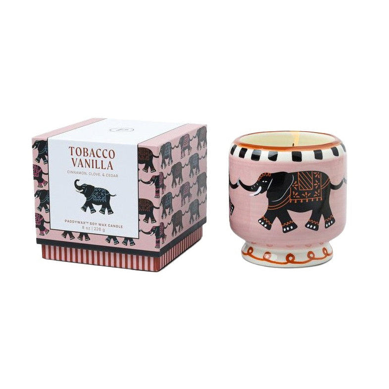 La bougie A Dopo – Elephant de Paddywax fait partie de la collection "A Dopo", parfumée et fantaisiste, qui évoque les voyages estivaux et transporte vers des atmosphères apaisantes. Son parfum gourmand et réconfortant de tabac vanille crée un moment de détente et de bien-être. Présentée dans un pot en céramique peint à la main, rose, décoré d’un éléphant, cette bougie devient également un objet décoratif à réutiliser une fois consumée.