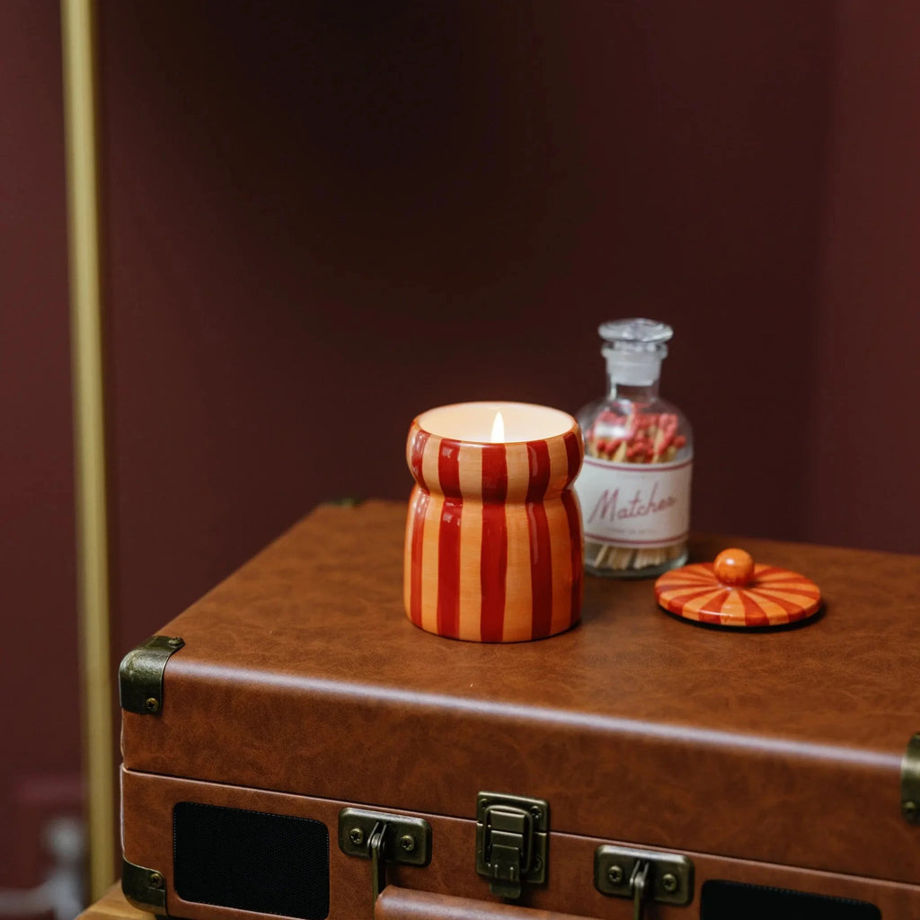 La bougie Cabana – Spiced Apple de Paddywax apporte une atmosphère gourmande et chaleureuse à votre intérieur. Son parfum épicé et fruité, mêlant tangerine, cannelle et vanille, évoque les après-midis automnaux et les douceurs d’hiver. Présentée dans un joli pot en céramique peint à la main aux tons orange et rouge, elle devient également un objet décoratif à réutiliser une fois la bougie consumée.
